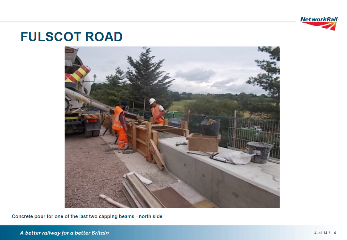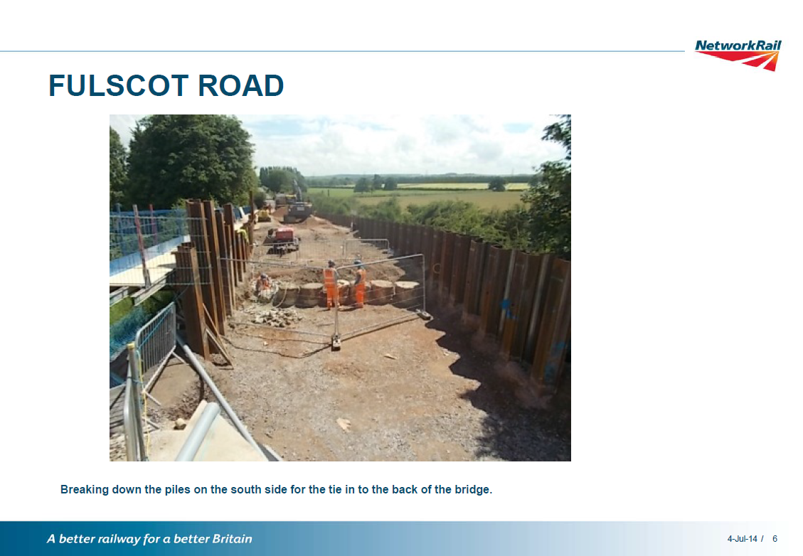 We continue to make good progress at Fulscot Road. The current status of the works is as follows: