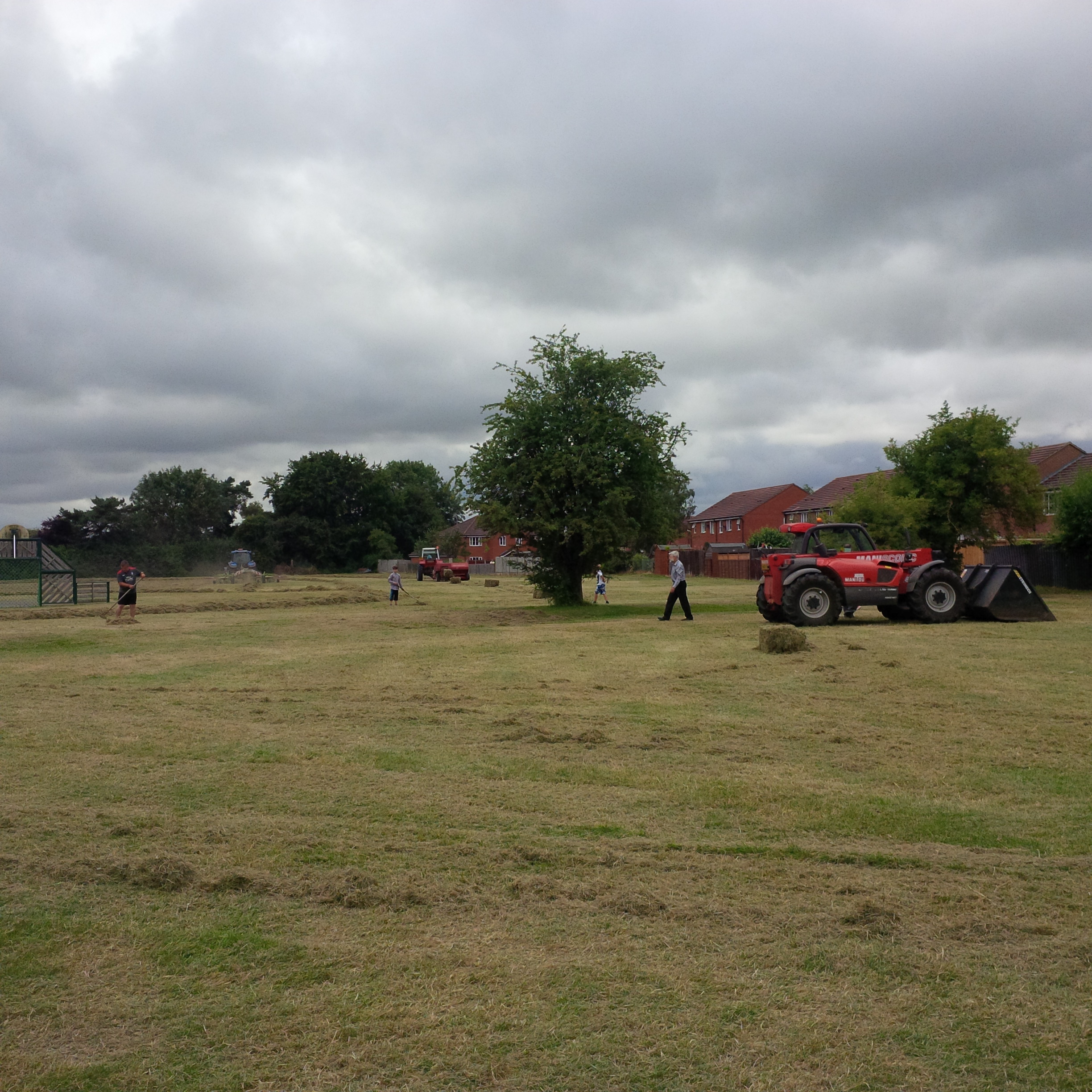 Rumours of “an hour” turned out to be slightly understated but with the help of various tractors, front loaders, a baler (which we broke), a big trailer and lots of lots of people with rakes (some of which we broke) the rec was cleared and cleaned ahead of the school summer holidays in a mere 6 hours.